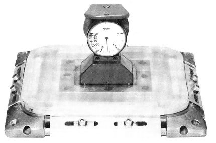 Its operating principle is similar to that employed by the CHECK-LINE HP Yarn Package Durometers, except that if is fitted with a one-inch bar indentor placed midway between two outer "reference" bars spaced two inches apart, instead of an indentor ball. When the instrument is placed on the material, the greater the tension, the more the bar will be pushed in and the greater the reading on the scale.